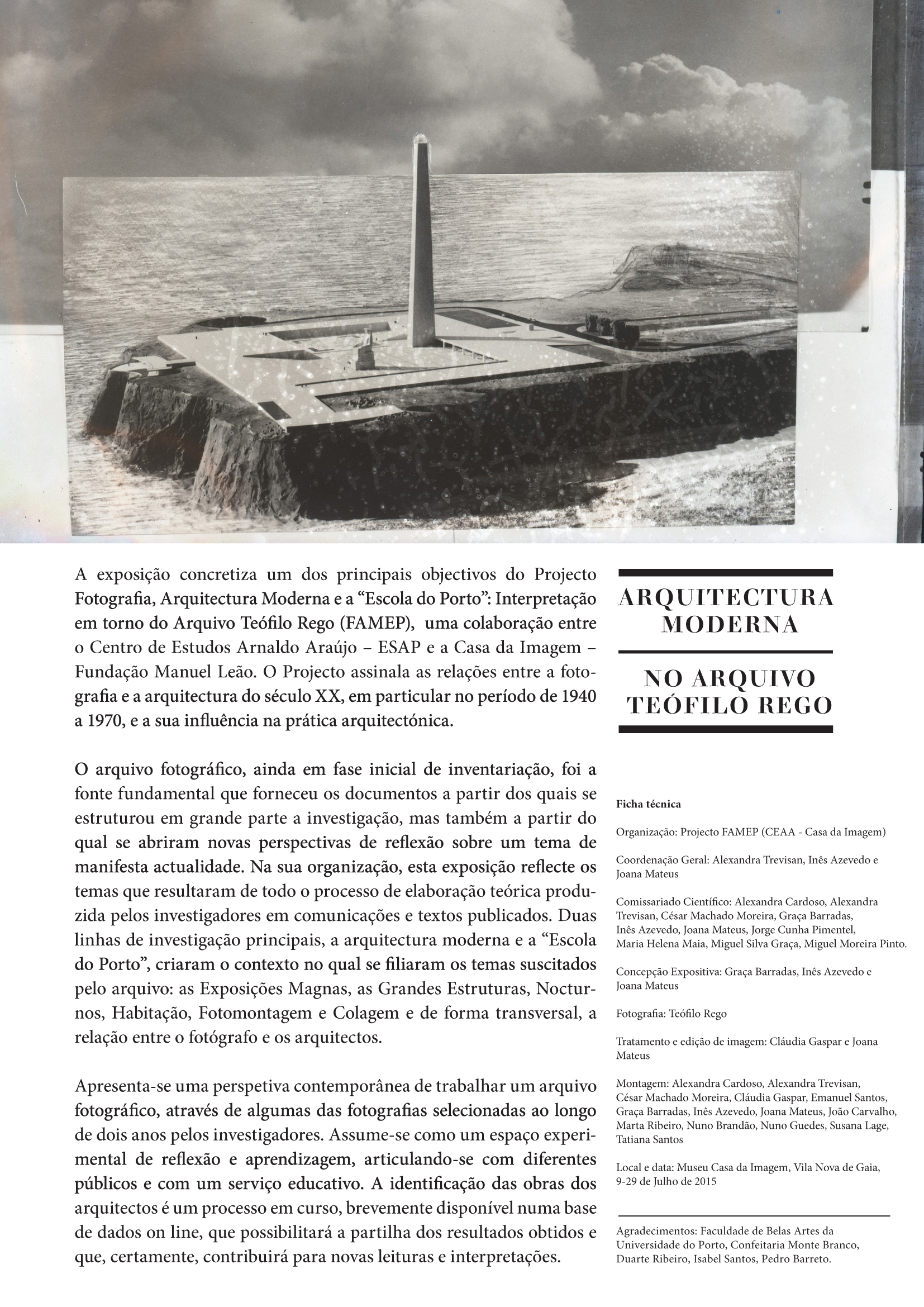 No dia 9 de julho de 2015, pelas 18h, foi inaugurada a exposição Arquitectura Moderna no Arquivo Teófilo Rego no Museu Casa da Imagem.