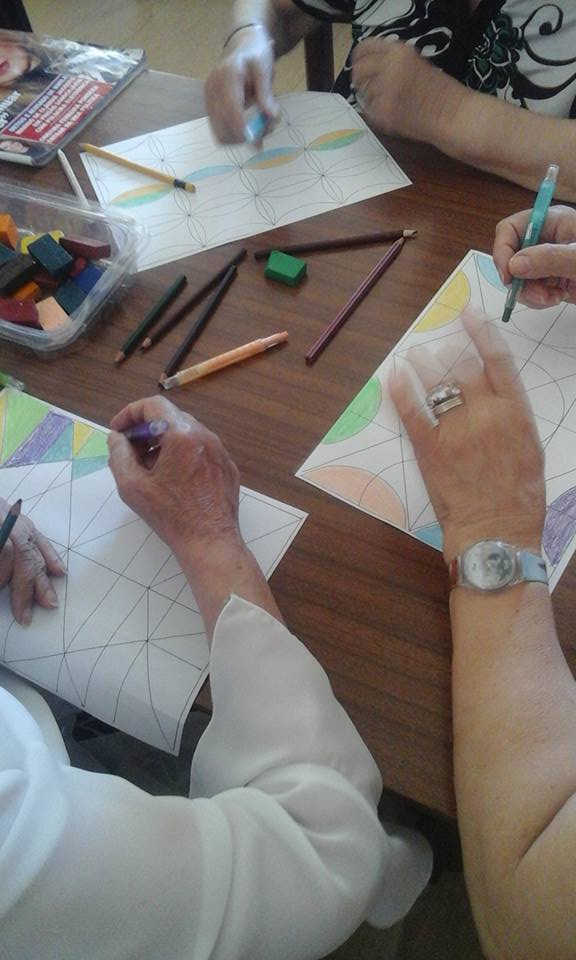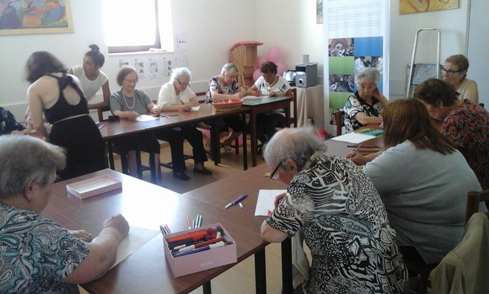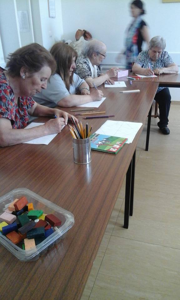 Na tarde do dia 28 de junho, no Centro Social do Bom Pastor com quem a Casa da Imagem colabora, houve mais uma aula de artes plásticas orientada pela Alcina Carneiro. As senhoras foram convidadas a intervir e colorir sobre os desenhos do Sr. Francisco, utente do Lar de Monte dos Burgos, com quem a Alcina Carneiro trabalha há uns anos.