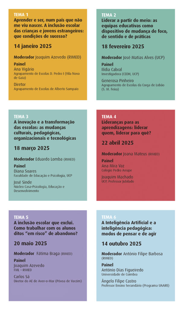 A RIMED (Rede para a Inovação e Melhoria da Educação) lança a segunda edição do Ciclo de Encontros RIMED na Web – Coconstruir roteiros para a inovação escolar II. Em 2024, a primeira edição dos Encontros RIMED na Web contou com mais de mil inscritos. As inscrições para a segunda edição estão abertas.