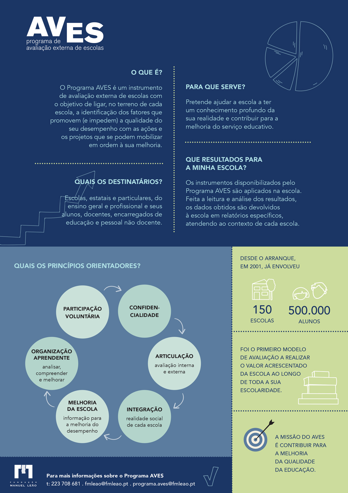 No próximo ano letivo 2024/2025 será lançada uma versão reformulada do Programa AVES, o Programa de Avaliação Externa de Escolas, criado em 2001 pela Fundação Manuel Leão, uma ferramenta que se tem mostrado eficaz para a promoção de um ensino de qualidade, através do apoio à autoavaliação e às subsequentes ações de melhoria. A revisão foi orientada por três critérios: pela necessidade de atualizar as provas de conhecimento em função das Aprendizagens Essenciais; pela reconstrução dos questionários de opinião dirigidos aos alunos, adaptando-os e atualizando-os, na sua linguagem, do 5º ao 12º, versando temáticas essenciais da atualidade; pela reformulação e articulação temática entre os instrumentos de avaliação da opinião sobre a escola dos diferentes agentes da comunidade escolar (professores, técnicos e assistentes operacionais e encarregados de educação).